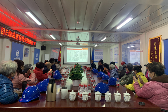 参观前项目经理李文龙向居民代表们讲解了工程现状及进入现场需要注意的安全问题,在确保所有人员安全防护到位后活动正式开始。参观过程中,陪同人员结合施工现场实际状况和技术标准向大家进行介绍,并热情、认真、详尽地为居民代表解答相关问题,使大家对工程情况有了更加详尽的了解。